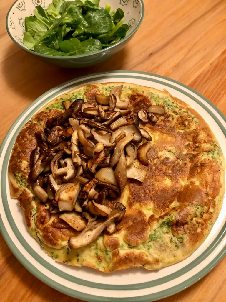 Ein Kartoffelpfannkuchen mit Schnittlauch und Pilzen… mmmmhhhmmm… 😋