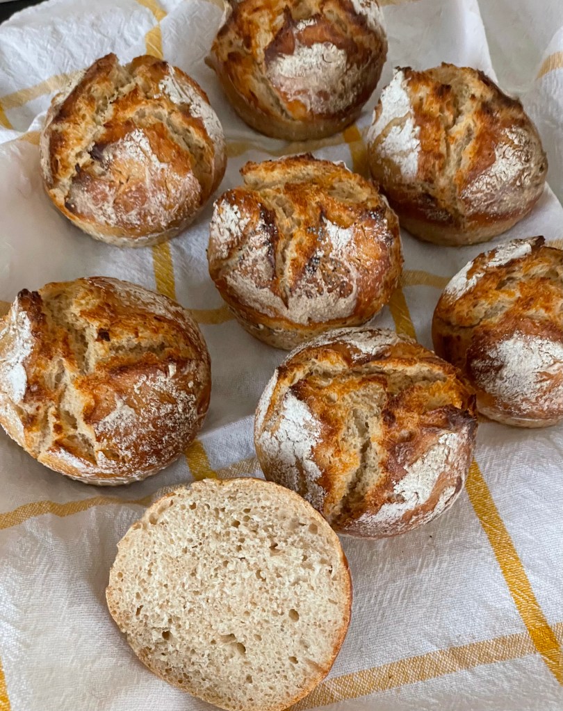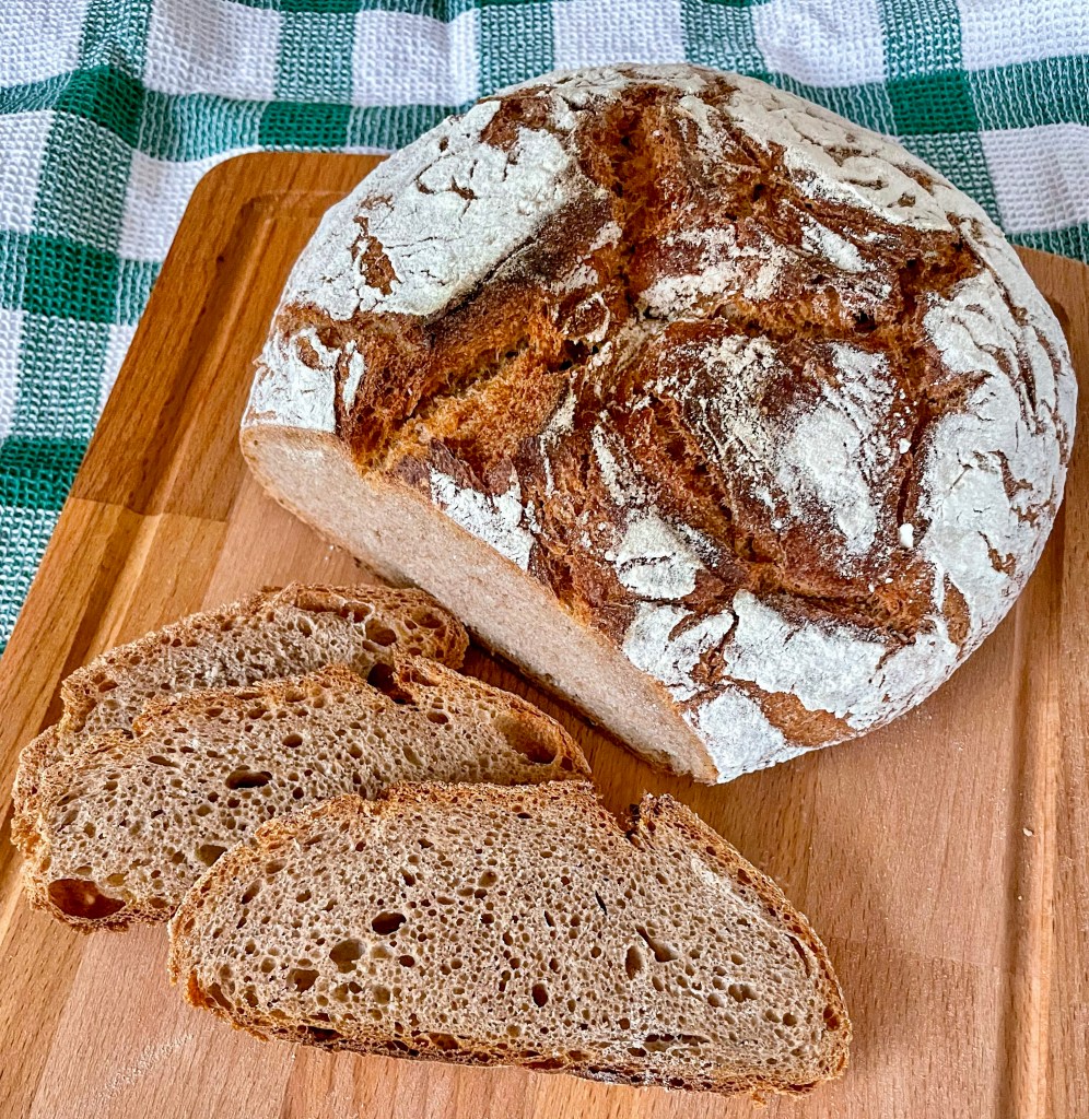 Aus Weizenvollkornmehl und Weizenmehl 550, mit Hefe und Buttermilch.