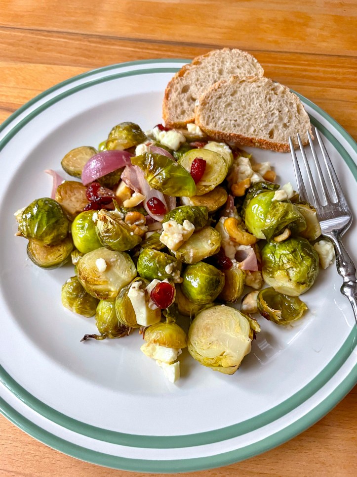 Karamellisierte Cashewkerne sorgen für den Crunch und süßsaure Cranberrys für das gewisse Etwas – das begeistert auch Rosenkohl-Hasser.