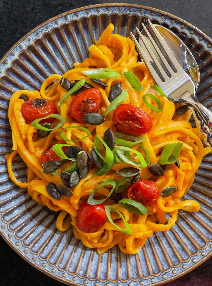 Comfort food at its best – Kokosmilch bringt die Cremigkeit, Chili den Pep, Kürbiskerne den Crunch. Köstlich!