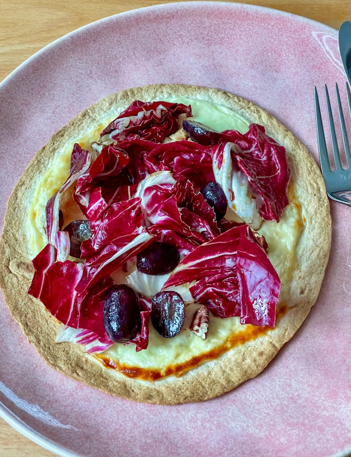 Sehen aus wie Jakobsmuscheln und sind von der Konsistenz auch sehr ähnlich: die Stiele von Kräuterseitlingen! Auf einem „Graupotto“ und mit dem bitter-frischen Radicchio die ideale Kombi!