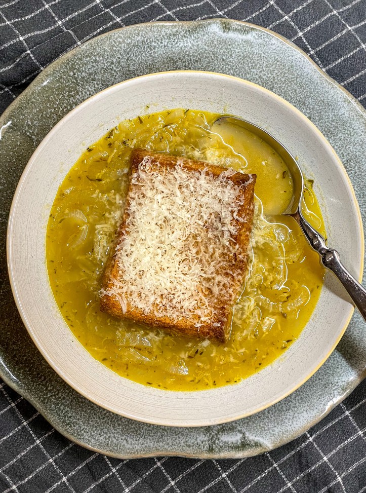die portugiesische Variante der Zwiebelsuppe mit Madeira Wein, Thymian und Sherryessig.