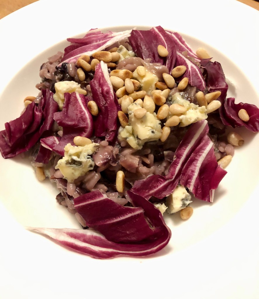 Die Kombi mit dem frischen Radicchio obenauf und den Pinienkernen und dem Roquefort, der noch nicht geschmolzen ist – perfekt! 👌