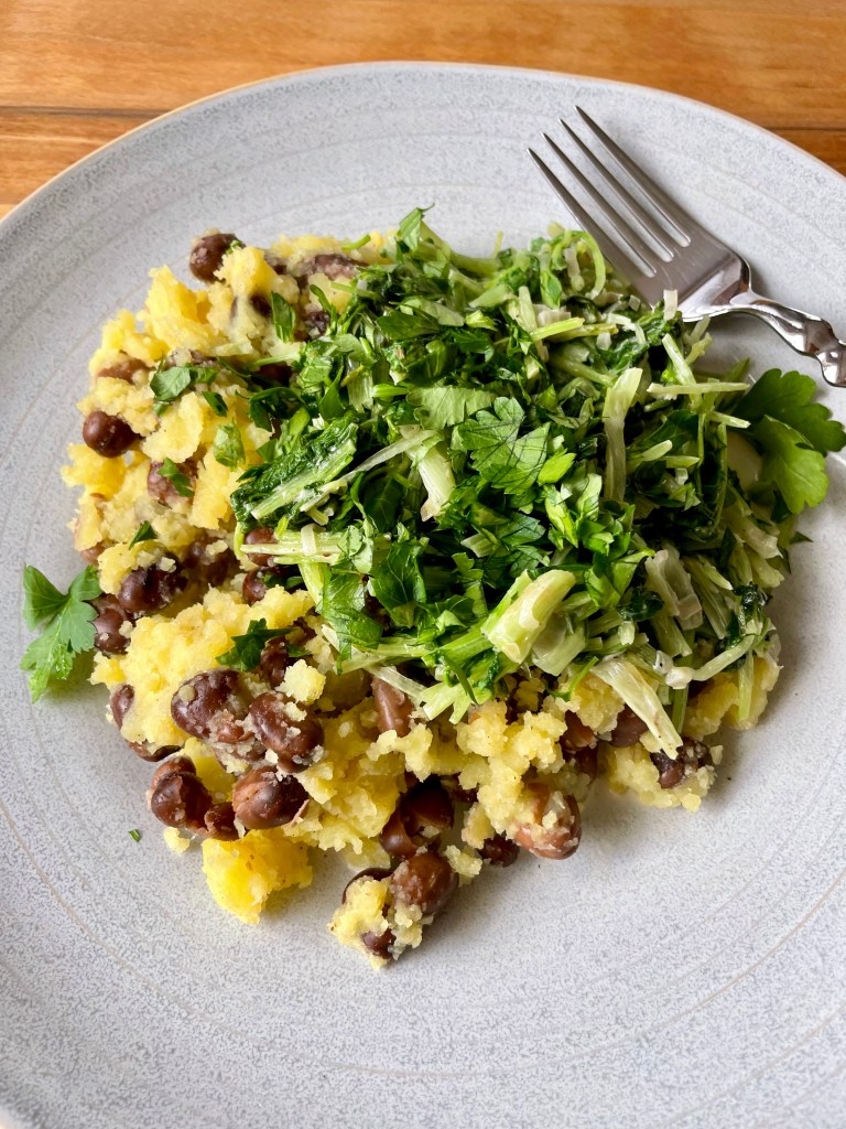 Stielmus (oder auch Rübstiel genannt) muss mindestens einmal im Frühjahr auf den Tisch. Die Kombi mit Stampfkartoffeln ist klassisch – Ackerbohnen dazu zu nehmen war mir neu, ebenso wie die Bohne als solche. Also auf die Suche gemacht und bestellt. Man kann damit auch backen (schau dazu in den Kochbuch-Check von „Gesund und schlank mit Brot“ hier). Überhaupt scheint es wünschenswert zu sein, dass sie wieder mehr angebaut wird. Sie schmeckte wunderbar und passte gut zum Stielmus.