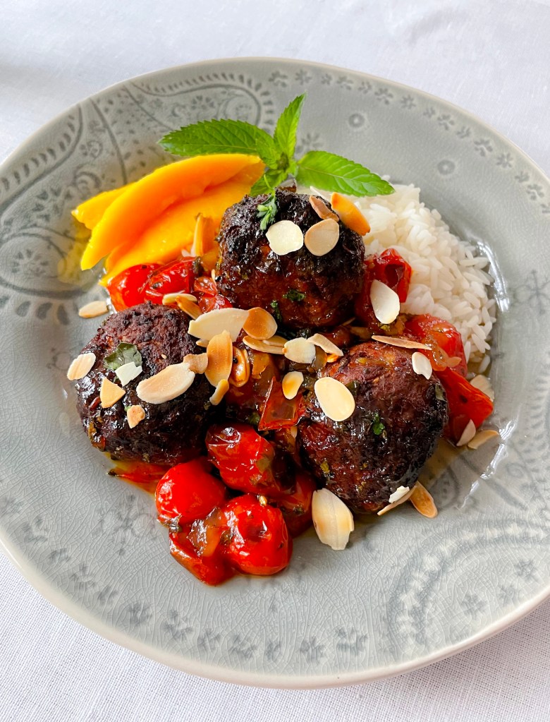 – Desi Kofta Hackbällchen mit klebrigen Mango-Limetten-Tomaten