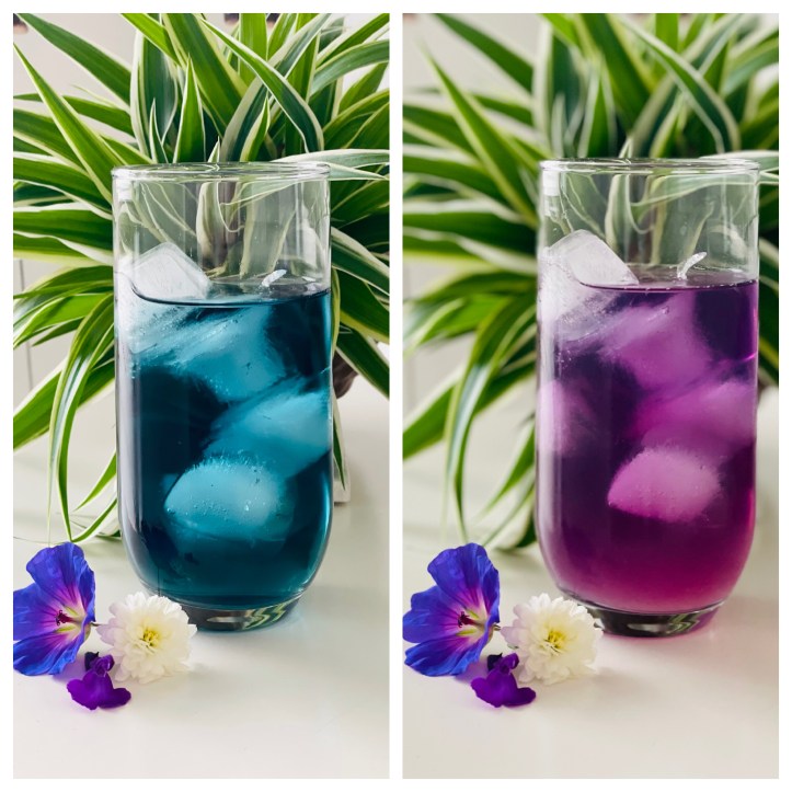 Mit Eis servieren und Limettensaft hinzugeben – und durch die Zitronensäure verfärbt sich der Tee von blau zu violett. Schöner Effekt – und sehr lecker! 🍋‍🟩