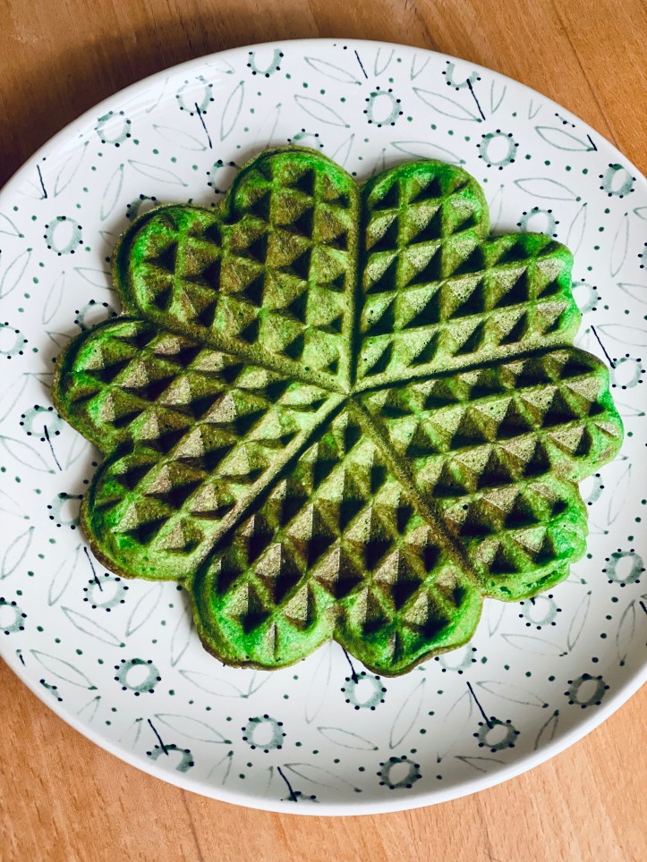 Pandan und Kokos sind das berühmte „match in heaven“ – immer eine tolle Kombi, hier im Waffelteig vereint, der wie auch bei uns üblich mit Mehl, geschmolzener Butter, Eiern, Backpulver, wenig Zucker, aber auch mit viel Kokosmilch und Pandan-Extrakt hergestellt wird. Letzterer war hier schon sehr grün eingefärbt, was optisch ordentlich Eindruck machte. 😃💚 Sehr schöne Waffel-Variante!
